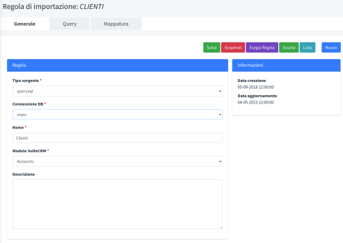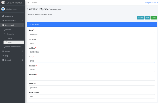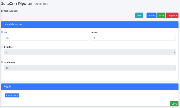 Im-Porter permette di definire e schedulare i flussi di dati da importare e da mantenere allineati su SuiteCRM tramite una semplice interfaccia web.