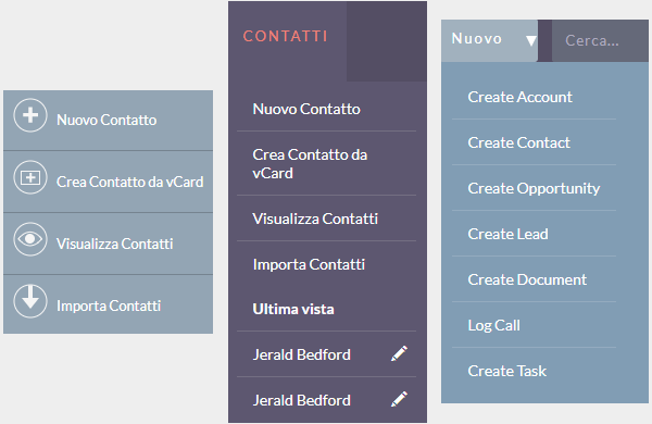 Un record all’interno di un modulo può essere creato passando da diverse aree dell’interfaccia di SuiteCrm.