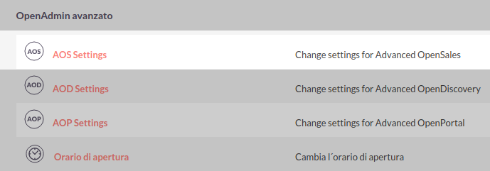 Nel pannello di amministrazione c’è la sezione AOS Settings, che ci permette di definire alcune impostazioni per i moduli relativi alla vendita come Preventivi, Fatture e Contratti.