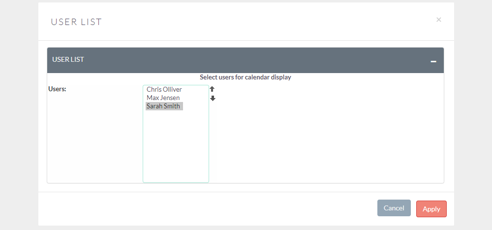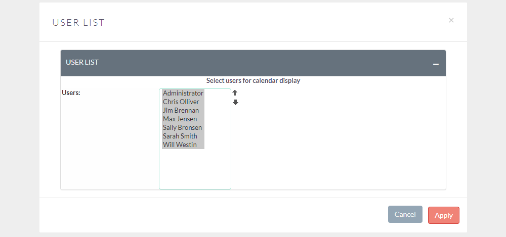 Inoltre permette di visualizzare tutti i calendari degli utenti o solo alcuni calendari degli utenti selezionati su Users List.