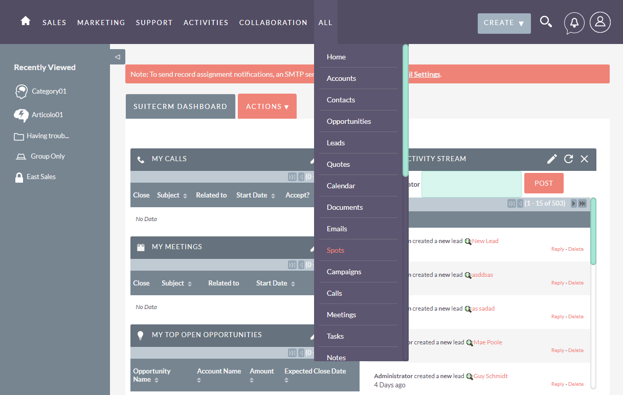 Segui anche il sito ufficiale del progetto www.suitecrm.com.