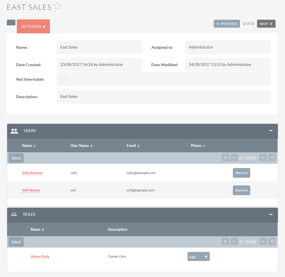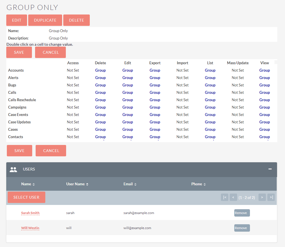 Con questo tipo di configurazione ogni Lead creato verrà automaticamente assegnato al gruppo dell’utente che lo ha creato ed a quello dell’utente a cui è stato assegnato. Se viene creata una chiamata associata al Lead, questa erediterà i gruppi del Lead (Parent Record) insieme ai gruppi dell’utente che lo ha creato e di quello a cui è stato assegnato.