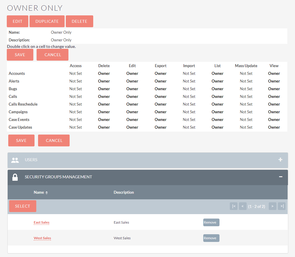 g) Assegna il ruolo del Owner Only al gruppo East Sales e West Sales.